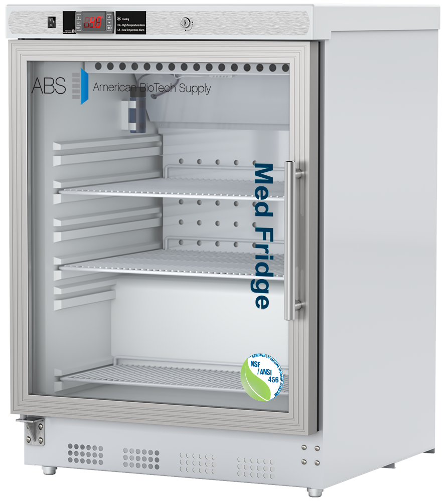 These advanced glass door pharmacy refrigerators are certified in accordance with the NSF/ANSI 456 Standard for Vaccine Storage. With this certification, units protect pharmaceuticals at optimal temperatures, preventing waste and allowing for peak delivery. These units utilize microprocessor controllers and feature temperature alarms, remote alarm contacts, and probe access ports with included probes. Built-in units are designed with front ventilation systems, allowing easy installation into a bench or countertop. All units run on natural, hydrocarbon refrigerant for environmental health and energy efficiency.