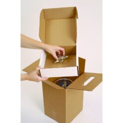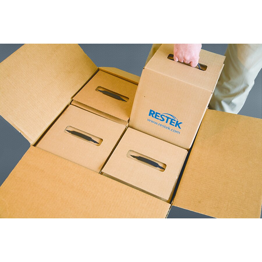 6-liter carrying boxes with plastic handles simplify canister transport. Four carrying boxes and one shipping box per kit.