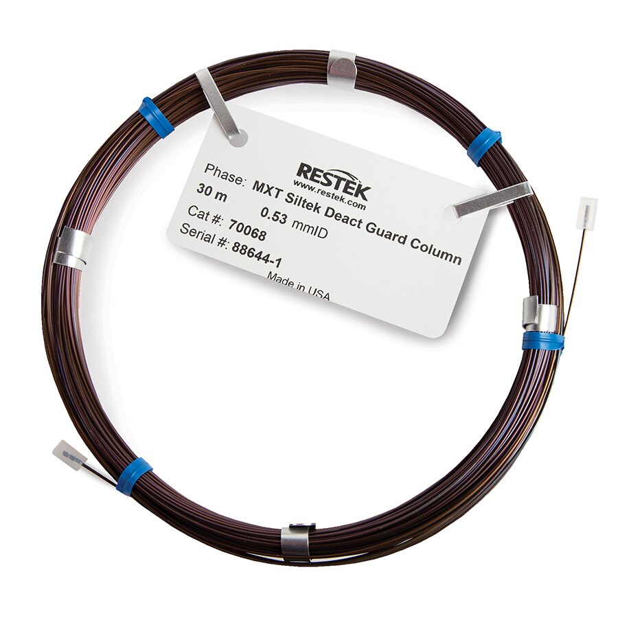 Guard columns and retention gaps are widely used in gas chromatography for different reasons. A guard column traps nonvolatile material at the head of the column, not allowing it to reach the analytical column, protecting it. A retention gap helps focus the compounds transferred from the inlet as a small band at the head of the analytical column to minimize chromatographic peak broadening. Siltek-treated, stainless-steel MXT guard columns provide excellent compatibility with MXT analytical columns while offering the strength of metal with the inertness of glass. These guard columns can also function as retention gaps. To discover how to connect an MXT guard column or retention gap (deactivated tubing) to an analytical column using an MXT low dead-volume connector, see the MXT Low Dead Volume Connectors for Use with Fused Silica Capillary Columns installation instructions.