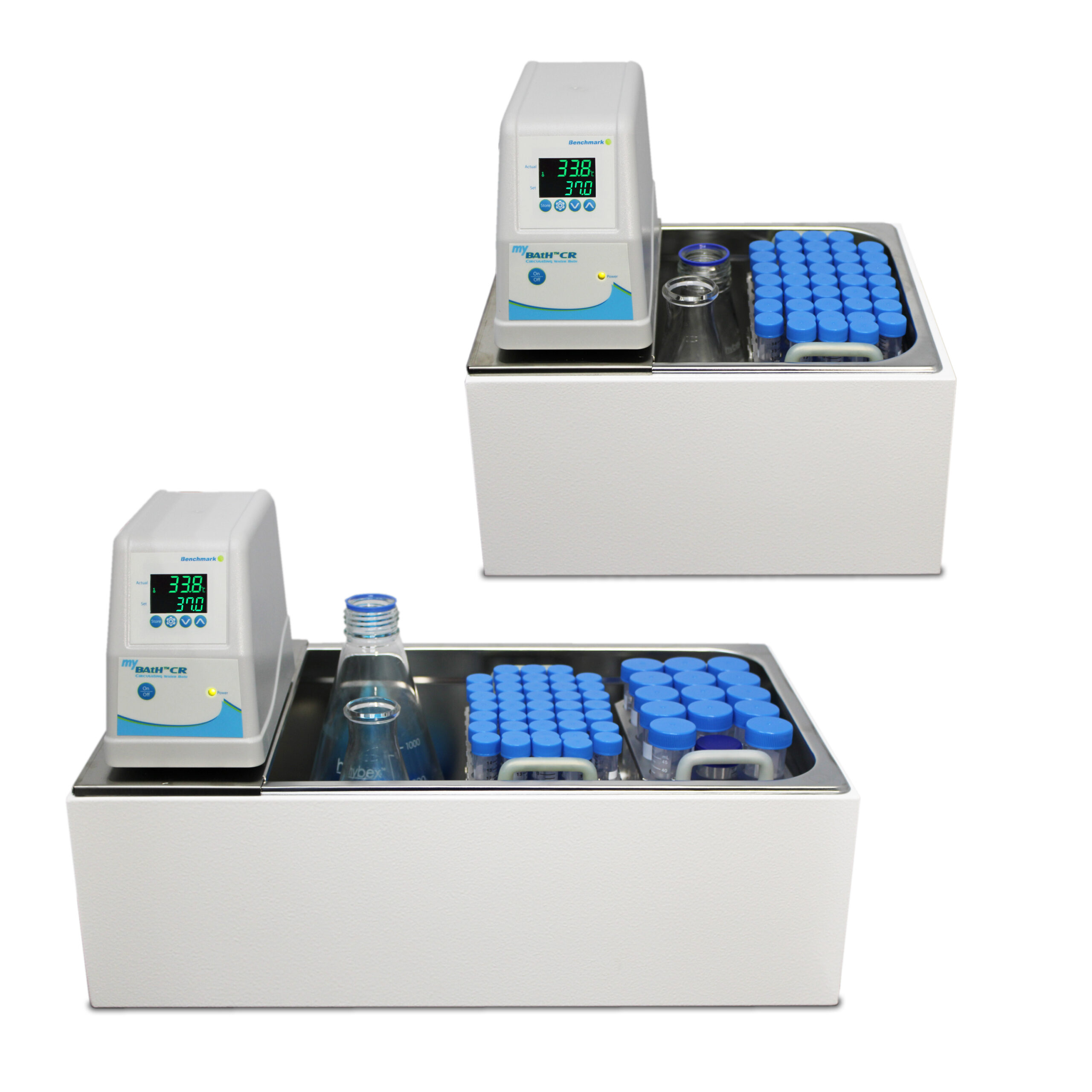 Benchmark’s myBath™ CR circulating water baths offer the same accuracy and convenience of our static myBath™ series, but with faster heat ramping and enhanced stability/uniformity. With constant circulation, water temperature is uniform throughout the chamber, eliminating “cold-spots” and allowing for quick recovery following insertion of frozen samples.