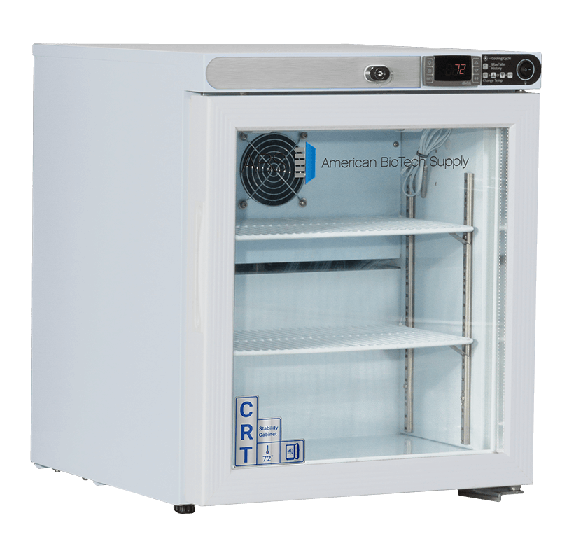 CRT-ABT-HC-UCFS-0104G – These glass door CRT cabinets provide controlled room temperature environments for storing sensitive substances that require precise temperature management. They are ideal for room temperature medication storage. These specialized cabinets come equipped with temperature alarms, keyed door locks, forced draft air circulation, probe access, and precise temperature monitoring through microprocessor control. Freestanding units require a 4-inch margin on all sides for adequate ventilation. All units run on natural, hydrocarbon refrigerant for environmental health and energy efficiency.