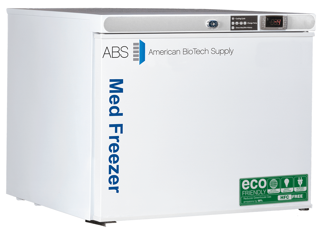 PH-ABT-HC-UCFS-0120A-LH – These countertop pharmacy freezers provide quality cold storage in a space-saving design. Units come equipped with temperature alarms, keyed door locks, forced draft circulation, probe access, and precise temperature monitoring through microprocessor control. Freestanding units require a 4-inch margin on all sides for adequate ventilation. These units are equipped with auto defrost cycles for convenient, automatic defrosting. All units run on natural, hydrocarbon refrigerant for environmental health and energy efficiency.
