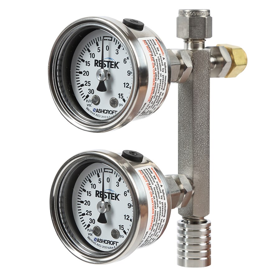 SilcoCan Air Sampling Canister, 3 L, with 3-Port RAVE+ Valve with Gauge