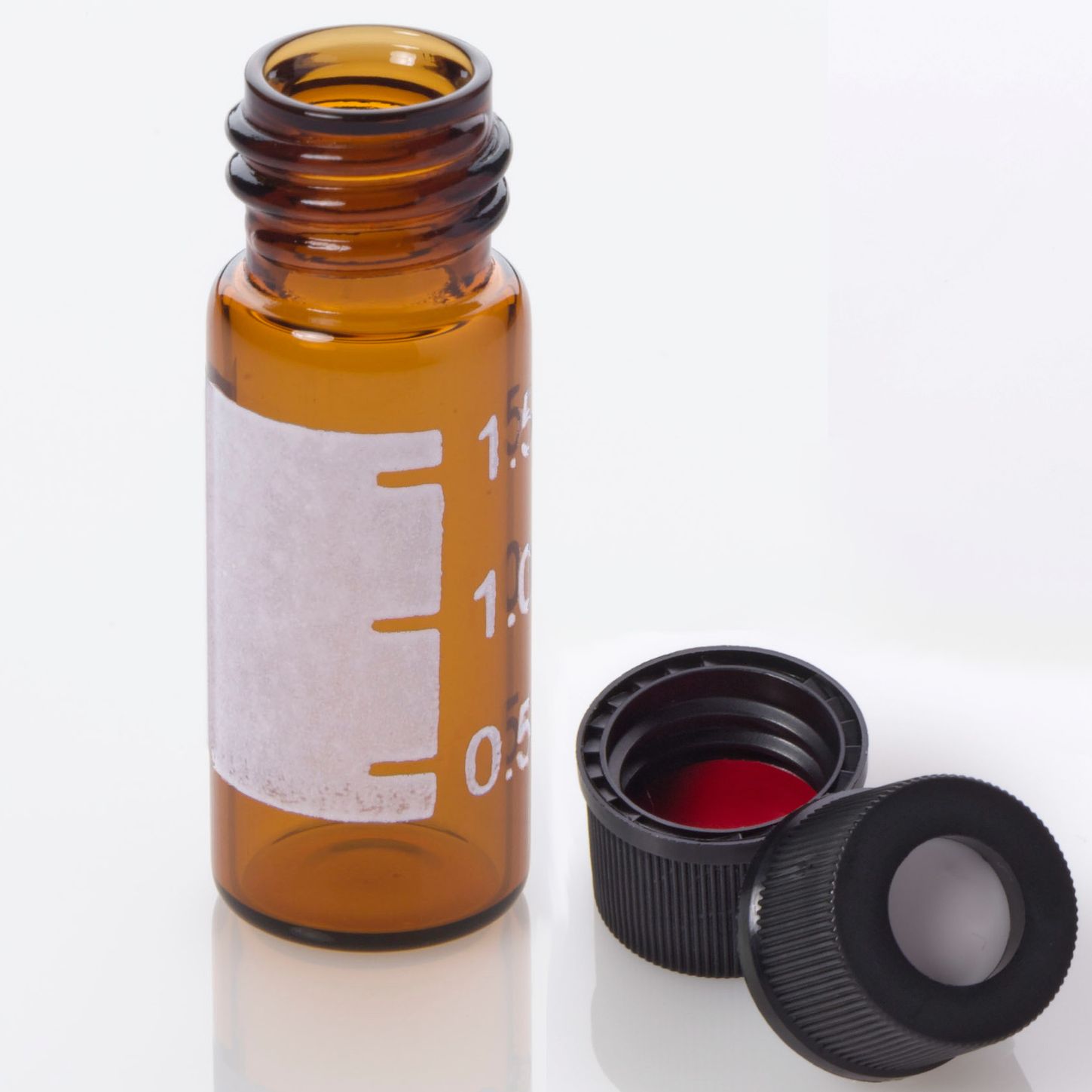 Vial Kit: 2mL Amber Glass Vial with Graduated Marking Spot, 10-425 Black Polypropylene Screw Cap with 0.060″ PTFE/Silicone Septa, 100/pk is a high-quality HPLC consumable.
