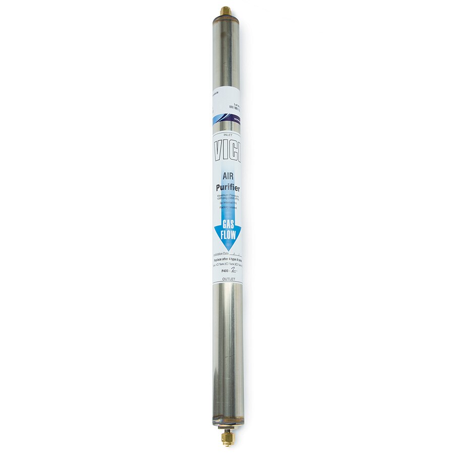 Performance for these purifiers is optimized by incorporating a multiple-bed format that progressively lowers concentrations of contaminants at each successive bed. VICI Mat/Sen purifiers are guaranteed to produce gases that are purer than 99.9999%, when supplied with gas of 99.995% purity, and are pre-purged with the specified gas to speed conditioning. Purifier capacity is approximately four tanks of gas at 99.995% (50 ppm) purity, and correspondingly longer for purer gases.